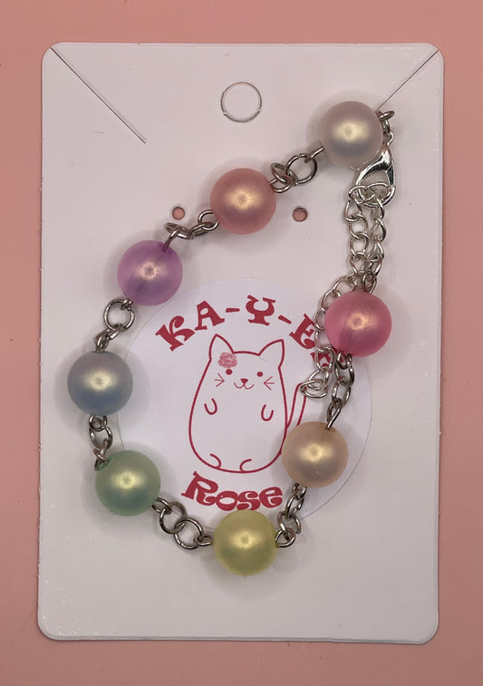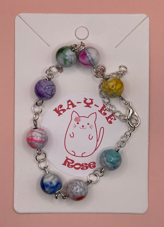 Red, Purple, Yellow and Pink Black Crackle Bead Bracelet