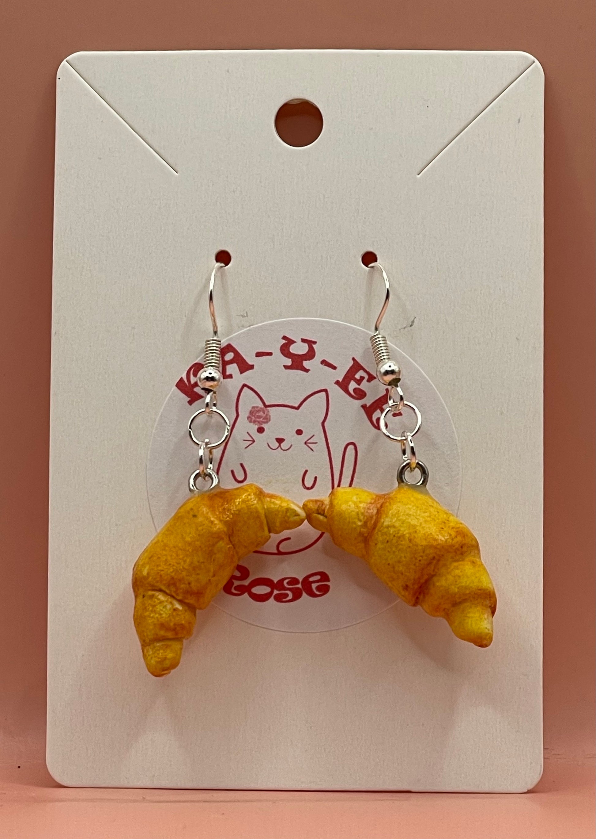 Adorable little croissant earrings available on gold or silver plated hypoallergenic earring hooks with gold or silver plated hardware.