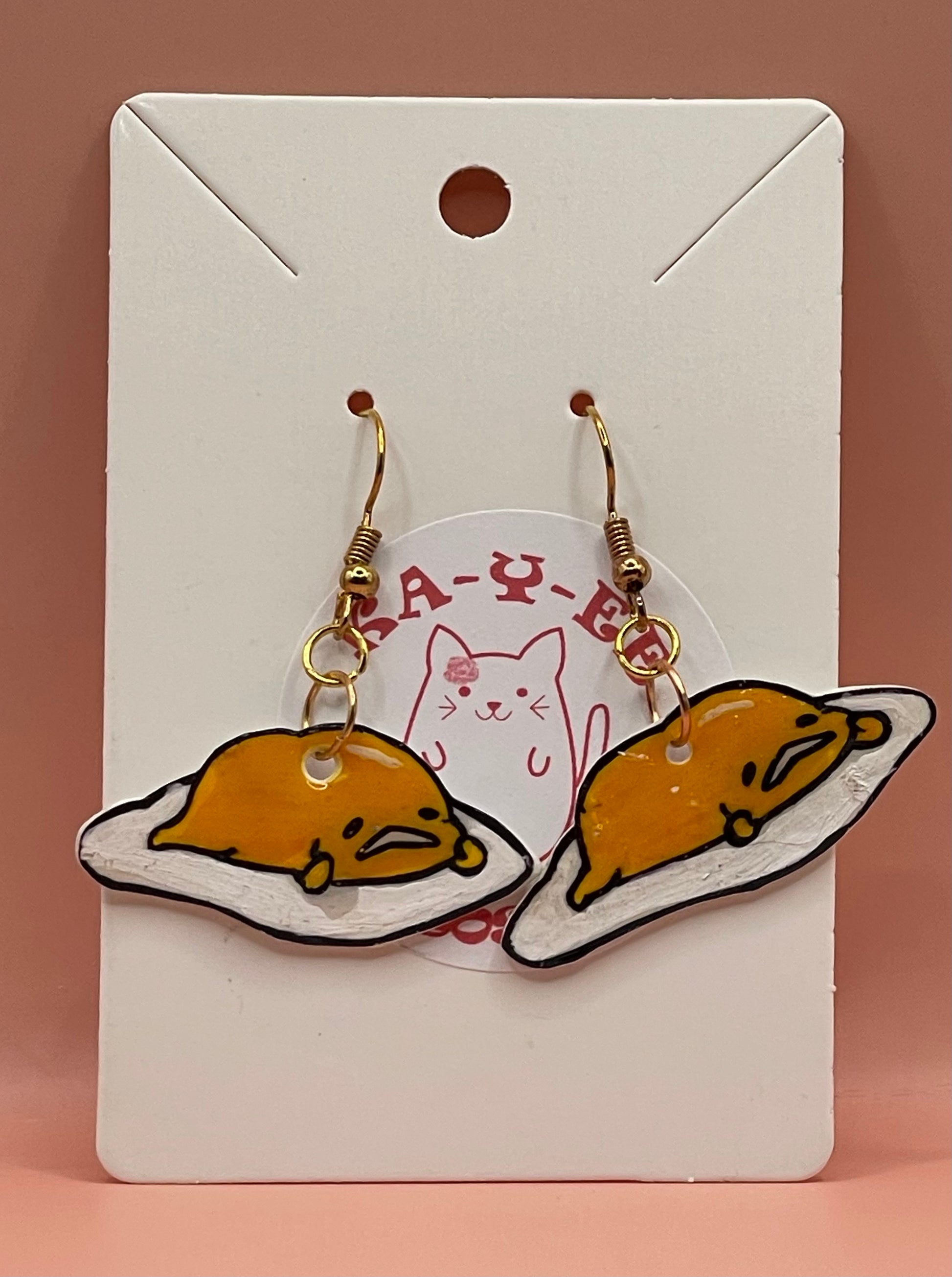Adorable lazy boi earrings made of polystyrene coated in resin and available on gold or silver plated hypoallergenic earring hooks with gold or silver plated hardware.