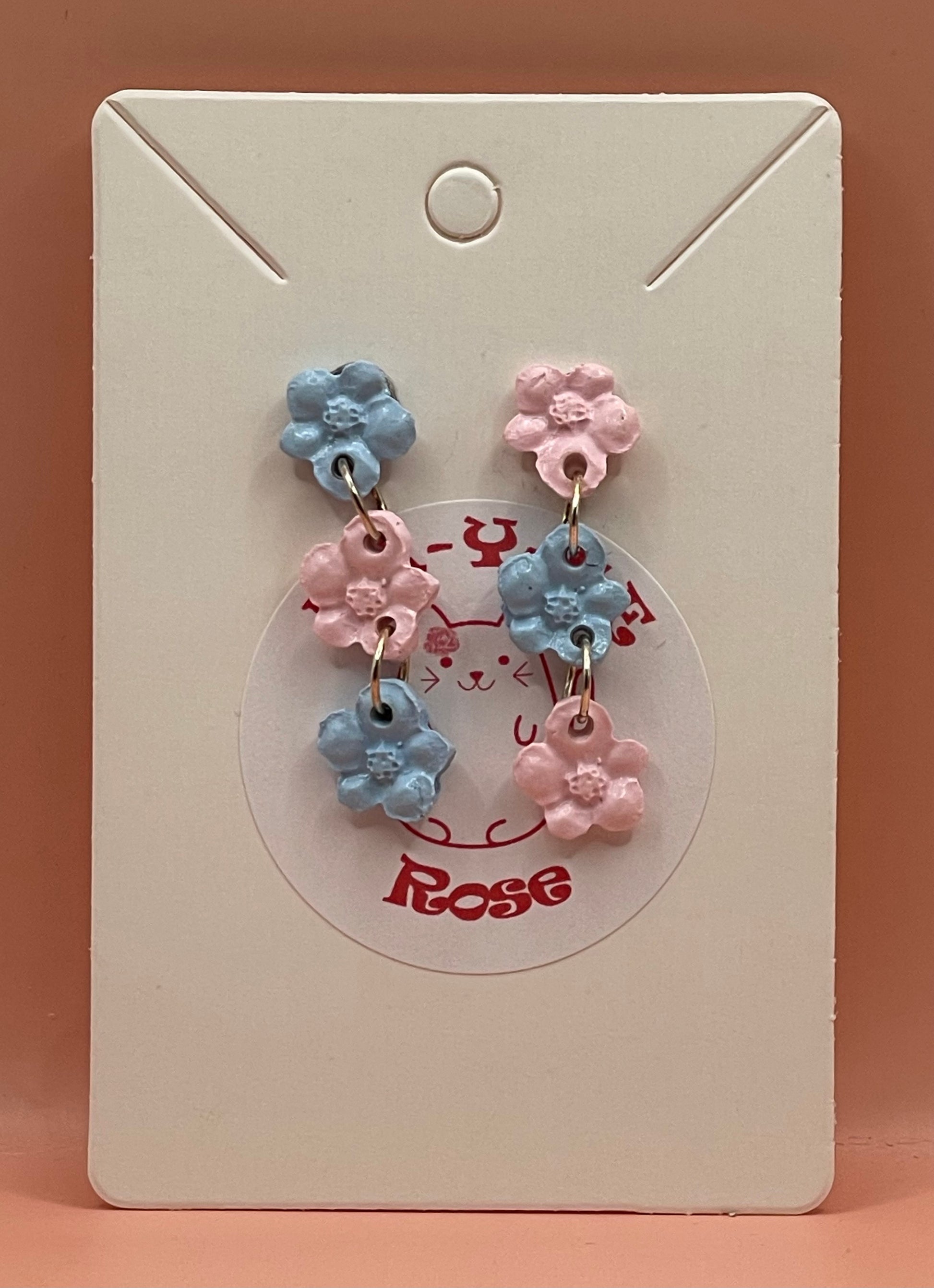 Pretty light pink and light blue flower drop earrings! The top flower hold a hypoallergenic and nickel free stud!