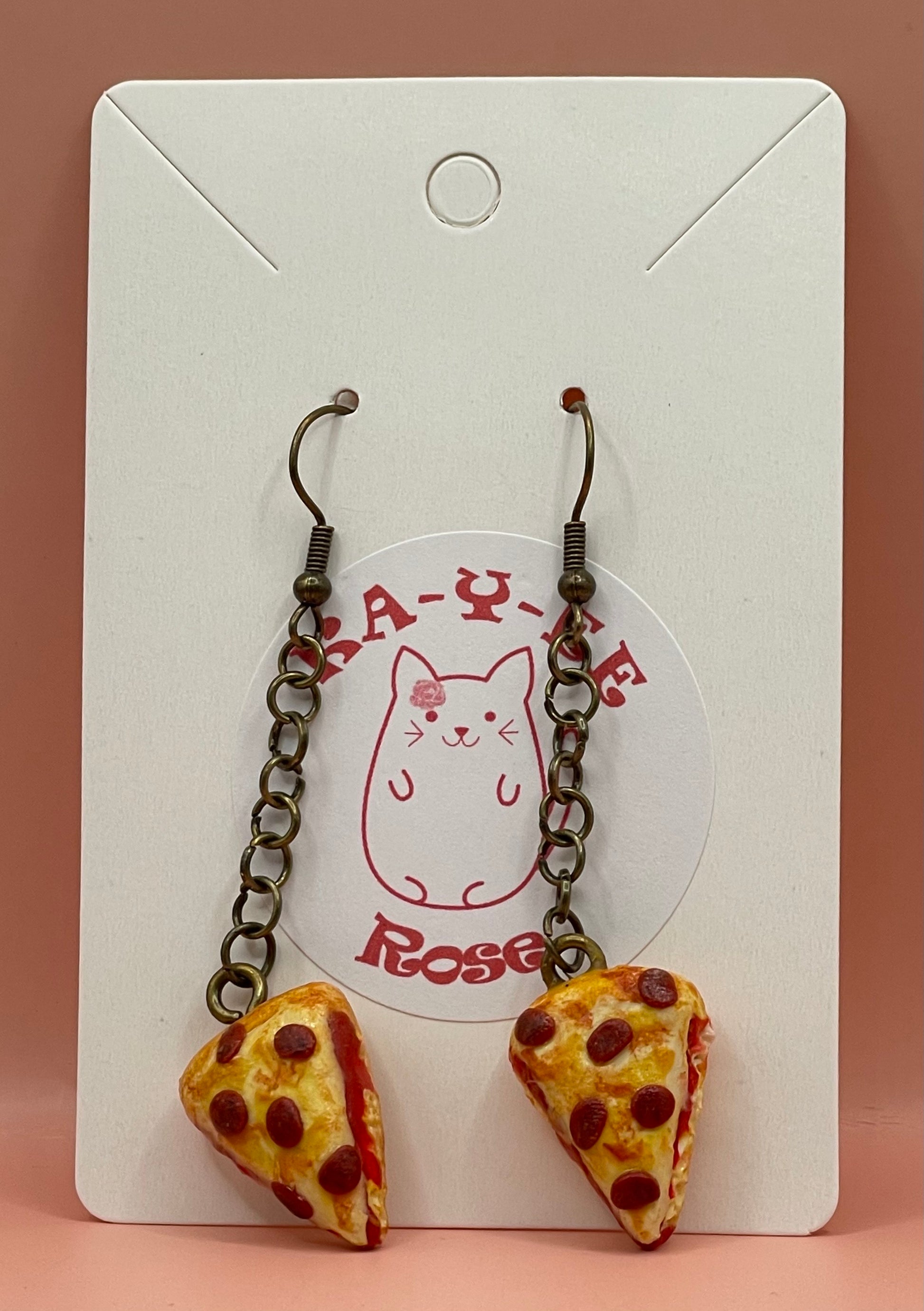 Sometimes we just want a slice... or two. Adorable pepperoni slice earrings (it can be vegetarian pepperoni if you like) available on brass, gold or silver plated hypoallergenic earring hooks with brass, gold or silver plated hardware. *Note there is one brass option left and there is a chance that the brass option may be discontinued.*