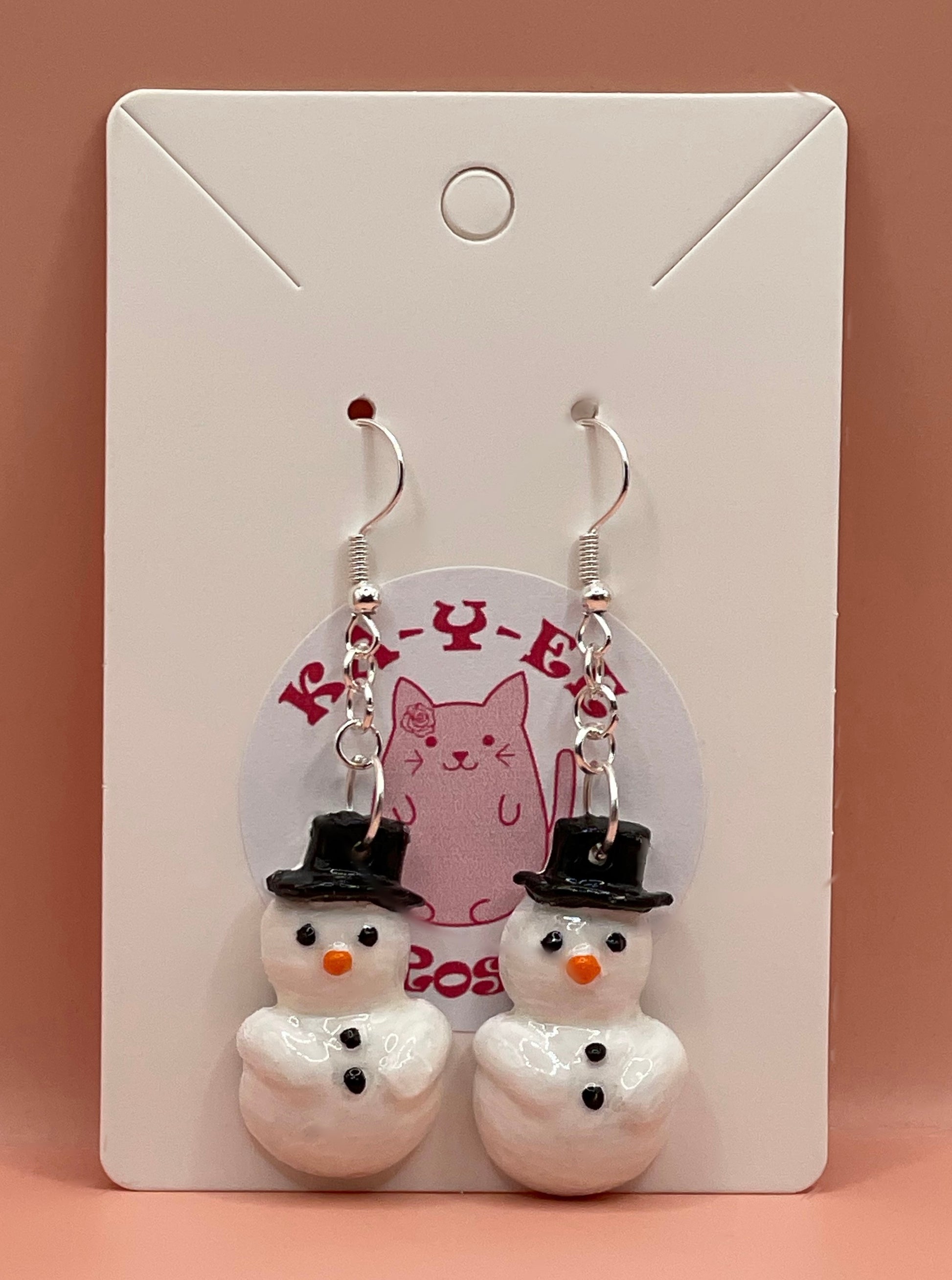 Version 1 of the Snowman earrings are cute flat back sculpted from polymer clay available on gold or silver plated hypoallergenic earring hooks with gold or silver plated hardware.