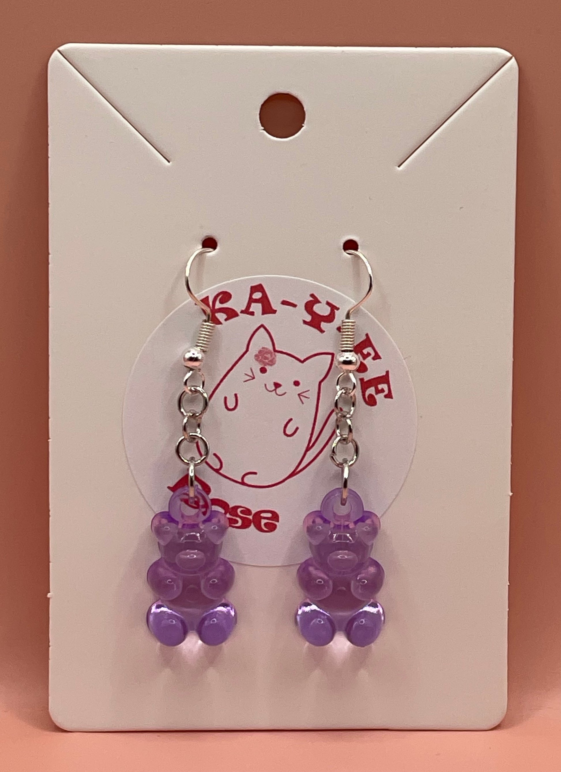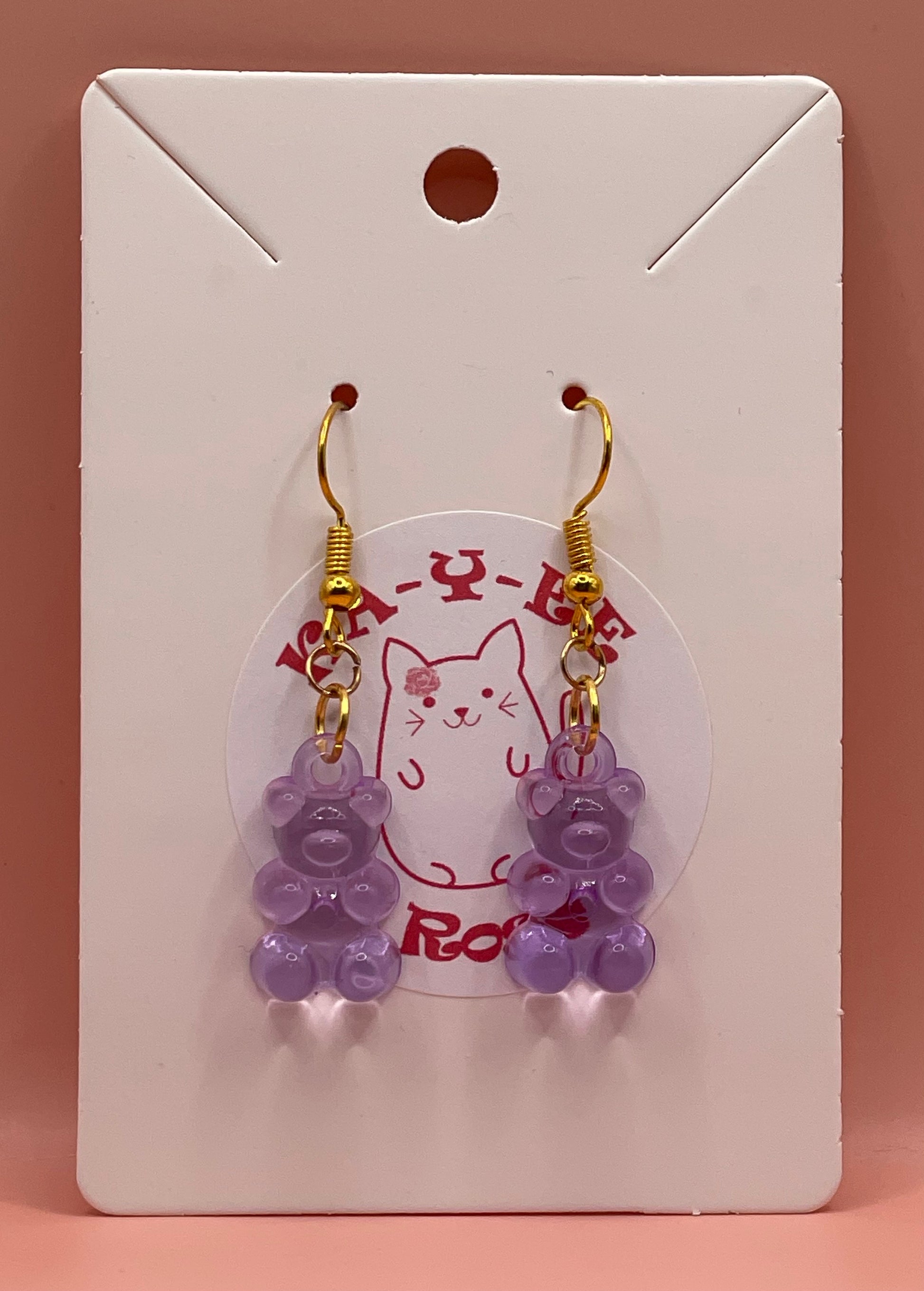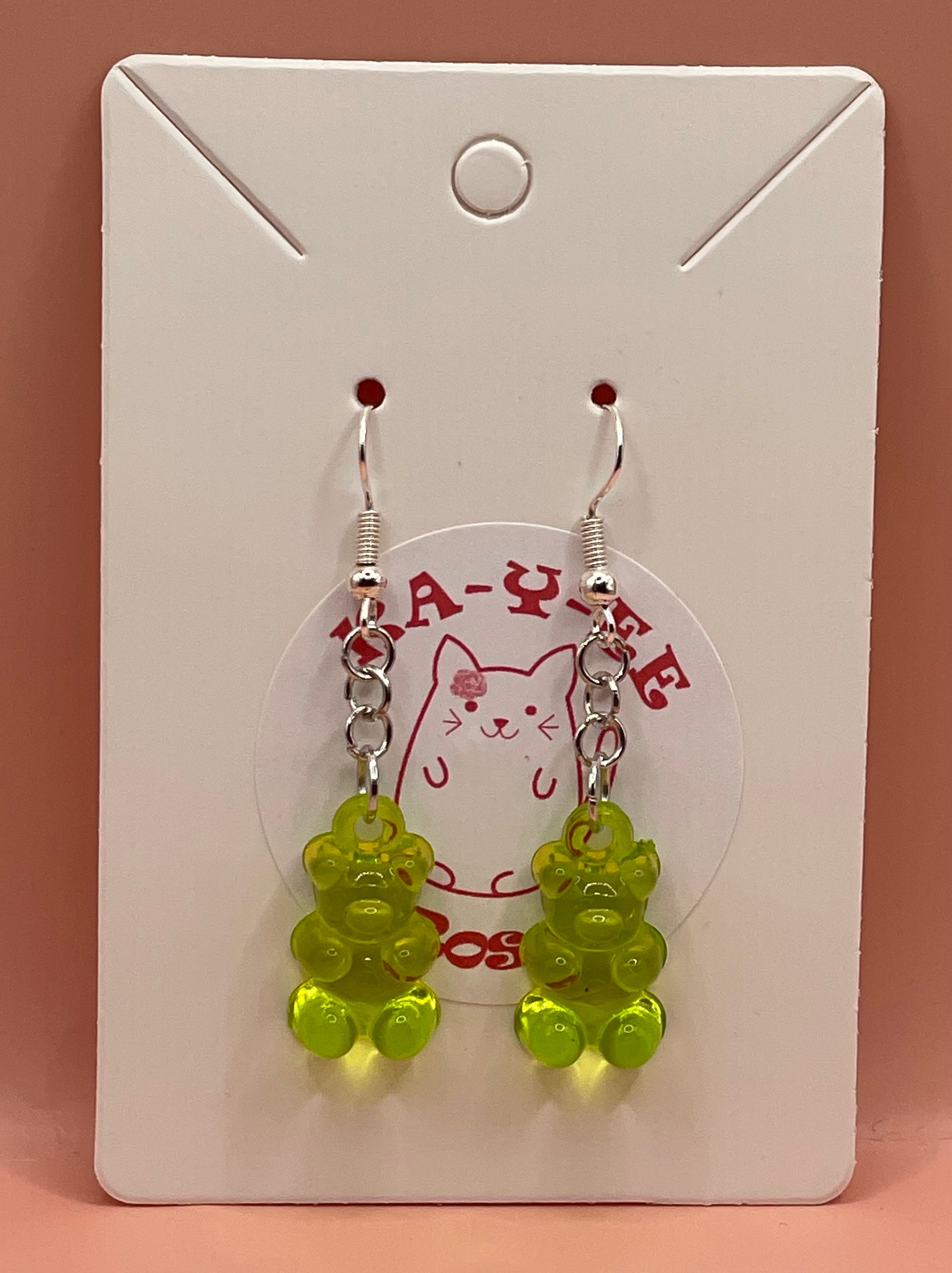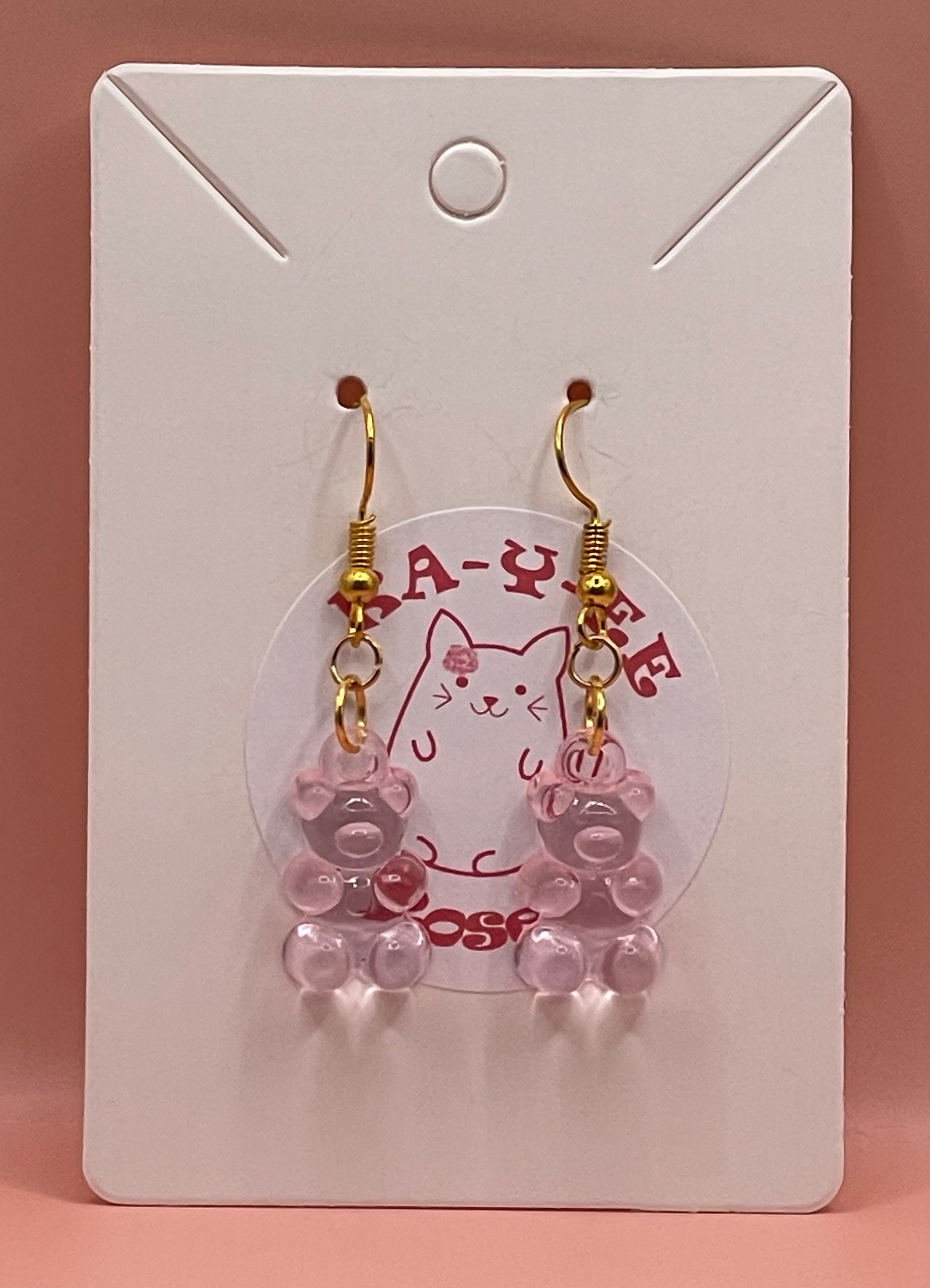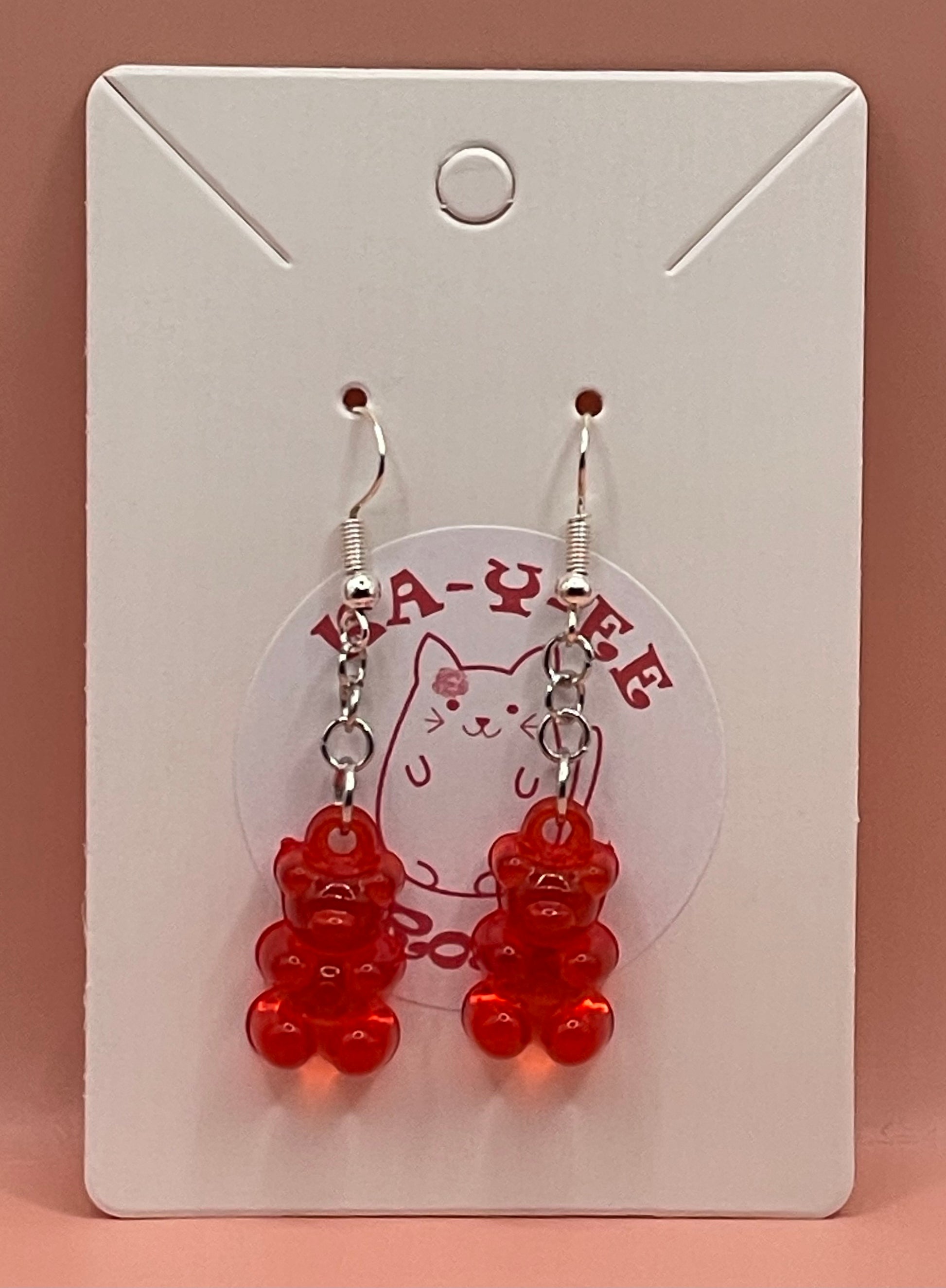 Nostalgic Y2K Resin Gummy Bear earrings with gold or silver plated hypoallergenic nickel free earring hooks with gold or silver plated hardware.