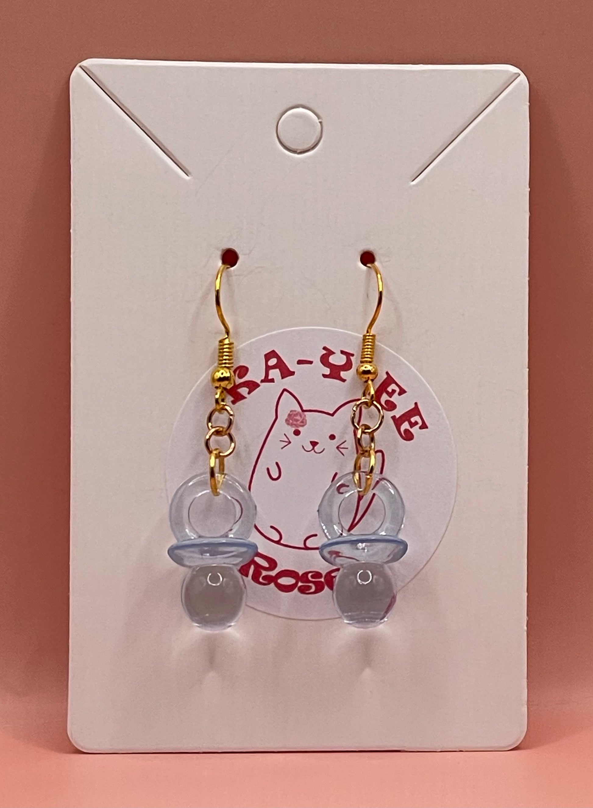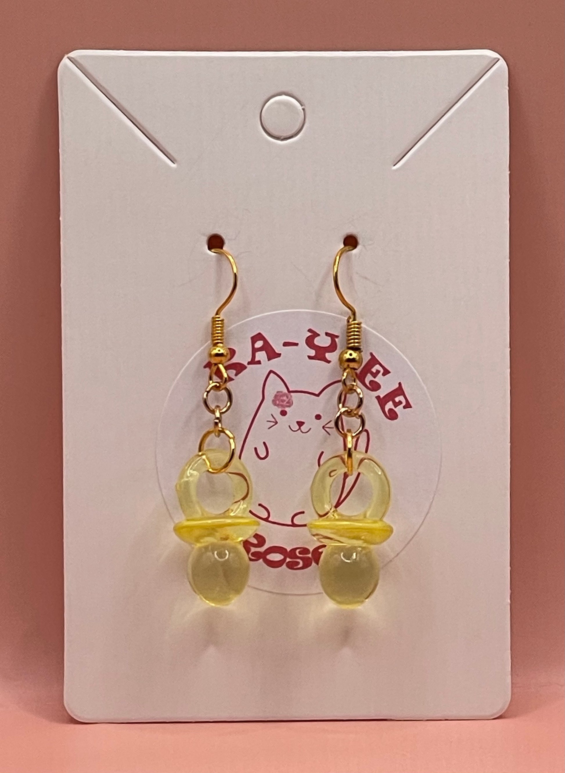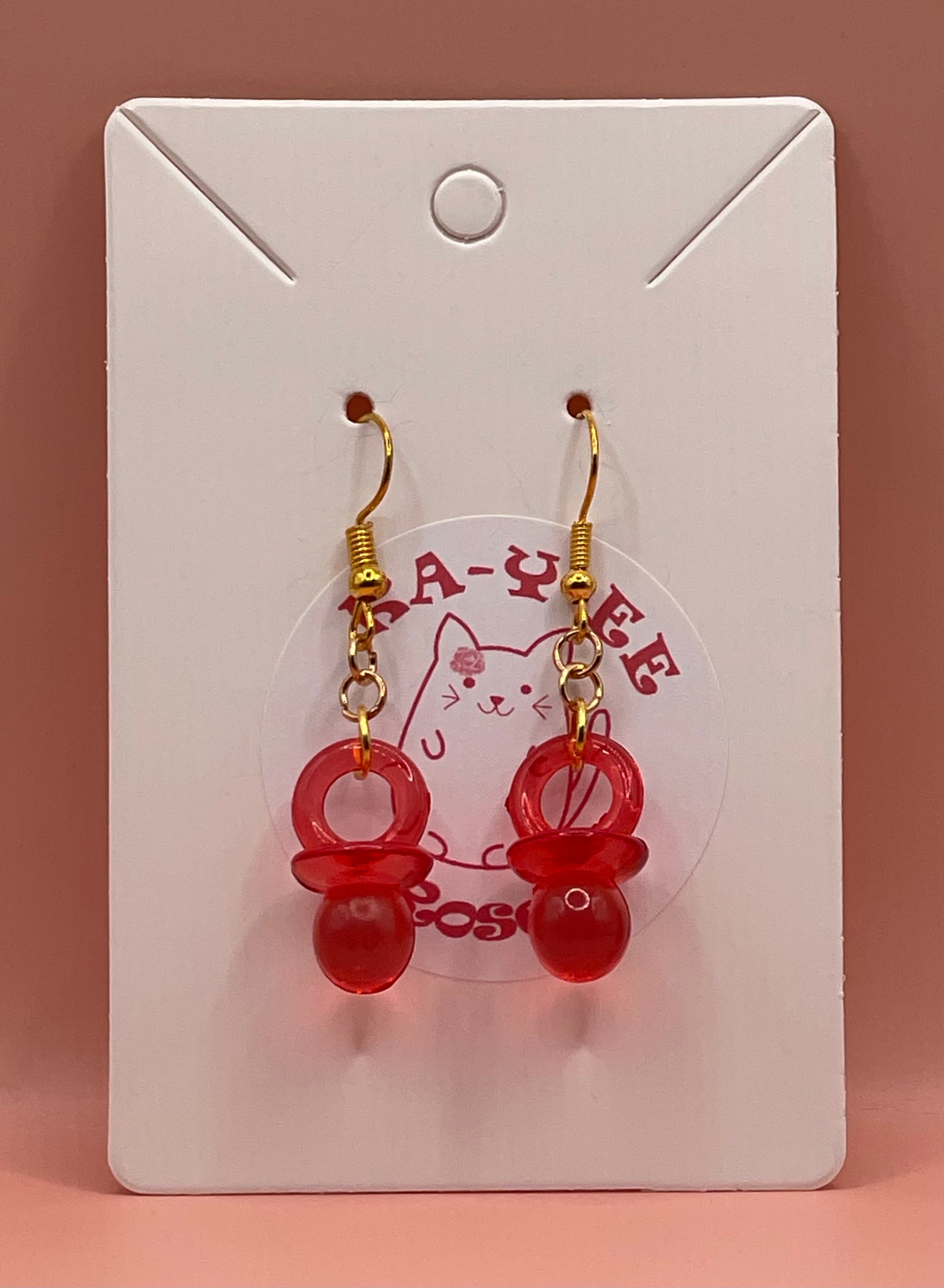 Nostalgic Y2K resin soother earrings with gold or silver plated hypoallergenic nickel free earring hooks with gold or silver plated hardware.