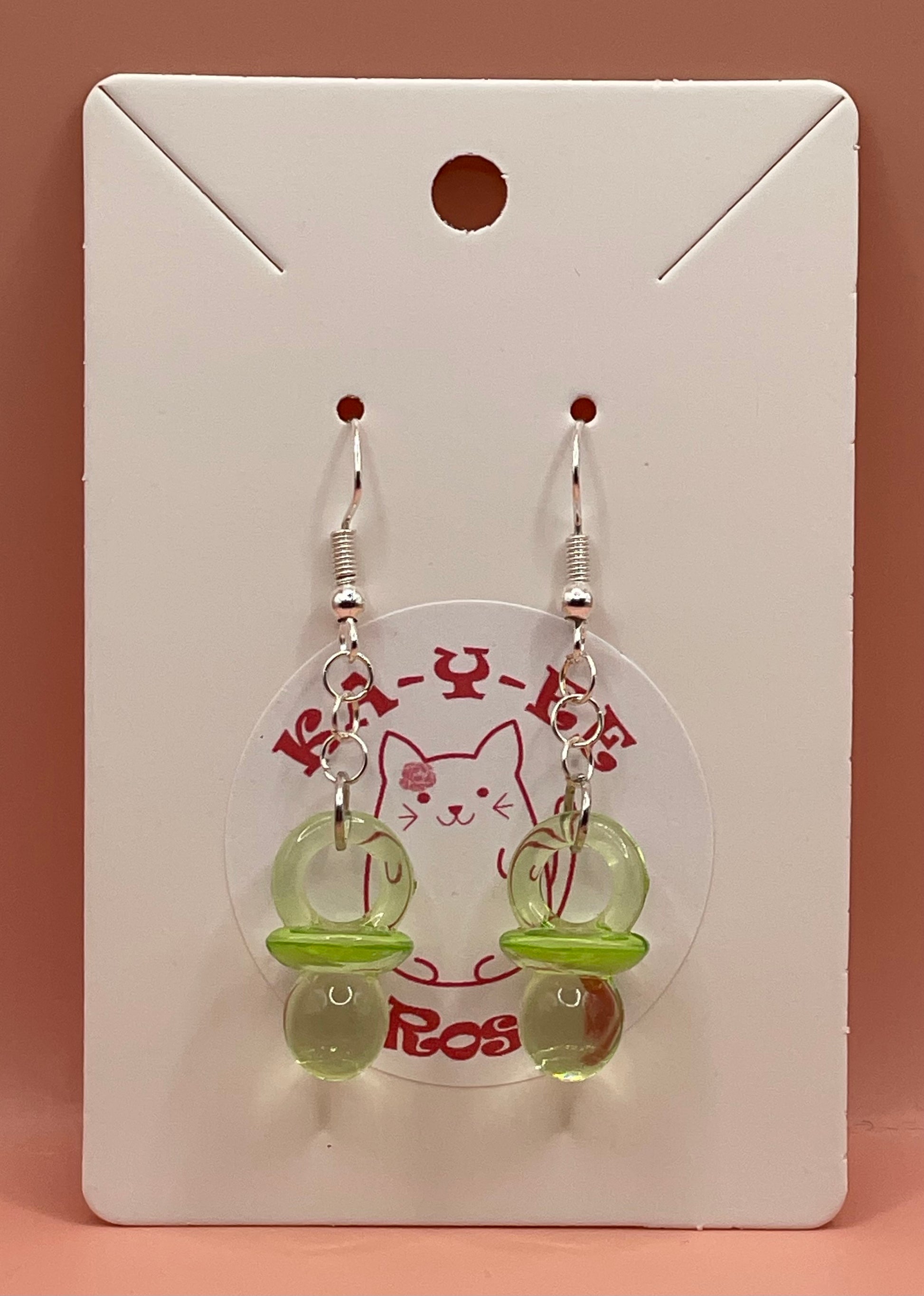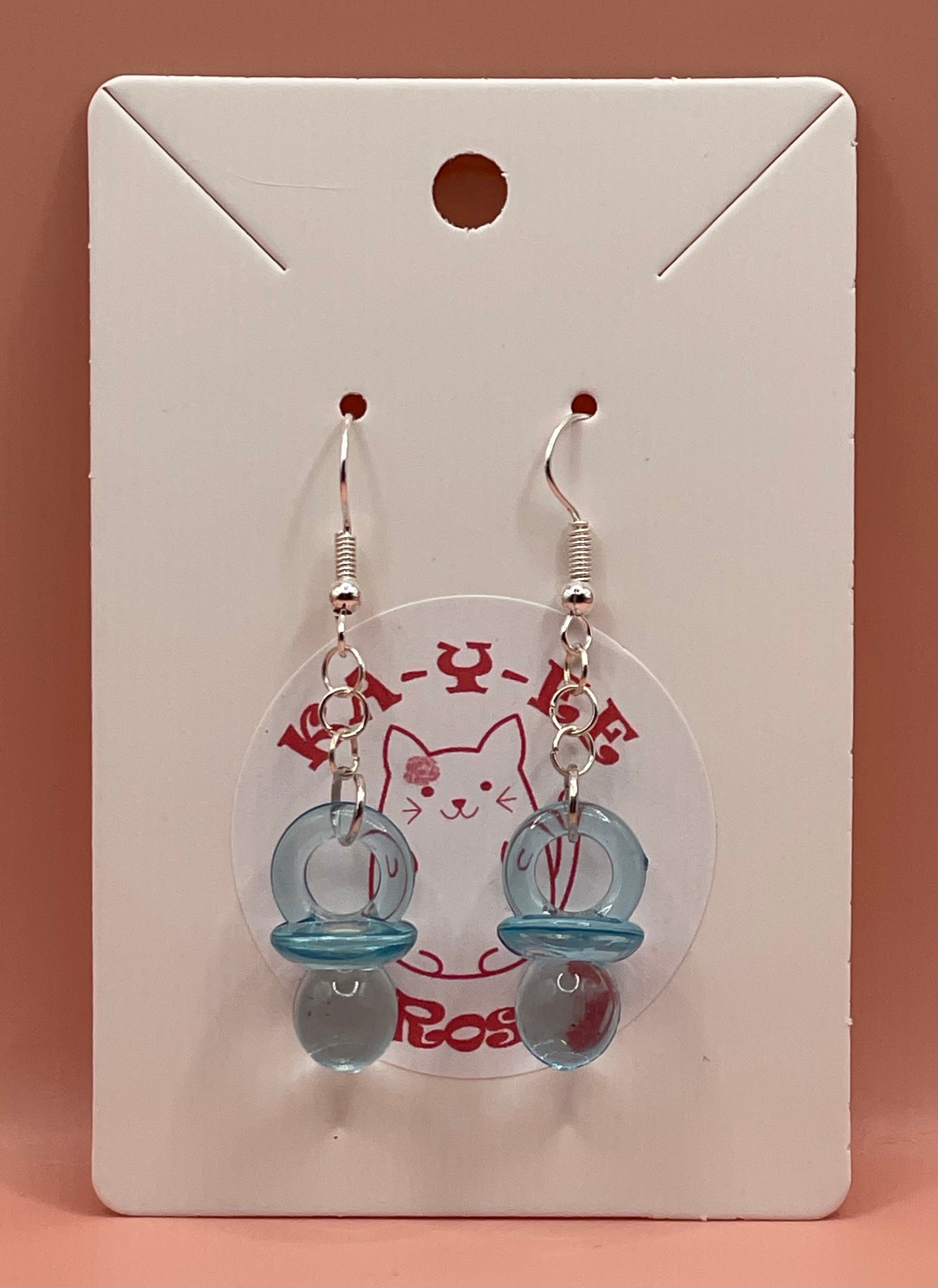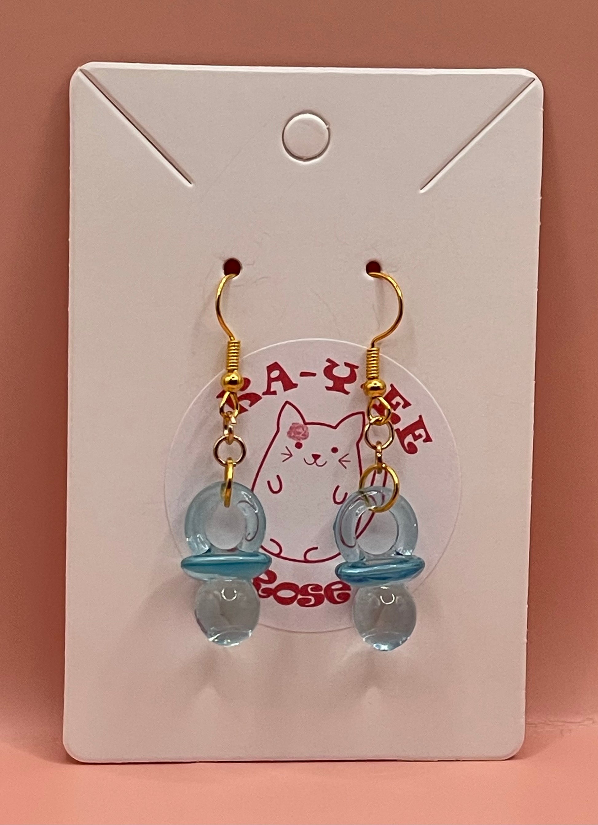 Nostalgic Y2K resin soother earrings with gold or silver plated hypoallergenic nickel free earring hooks with gold or silver plated hardware.